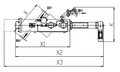| 型號 | 管徑 | 出入水口 | X | X1 | X2 | K | 過濾面積 | 處理水量 | 重量 |